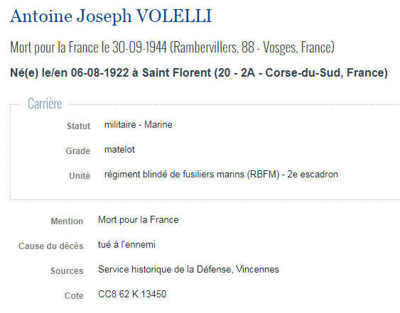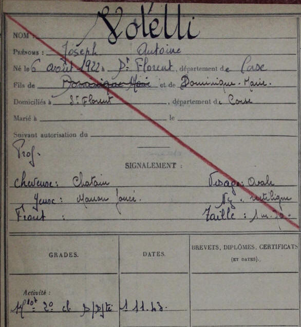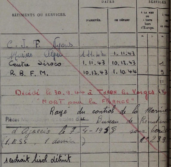 Né le 6 août 1922 à SAINT FLORENT (Corse) - Décédé le 30 septembre