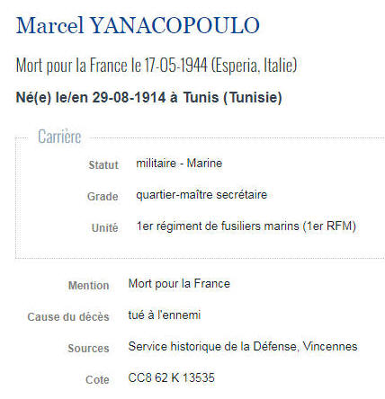 Né le 29 août 1914 à TUNIS (Tunisie) - Décédé le 17 mai 1944 à