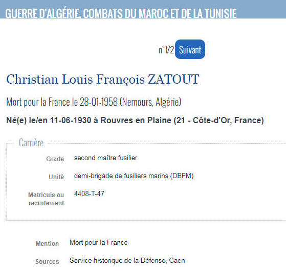 ROUVRES en PLAINE (Côte d'Or) - Décédé le 28 janvier 1958 à NEMOURS