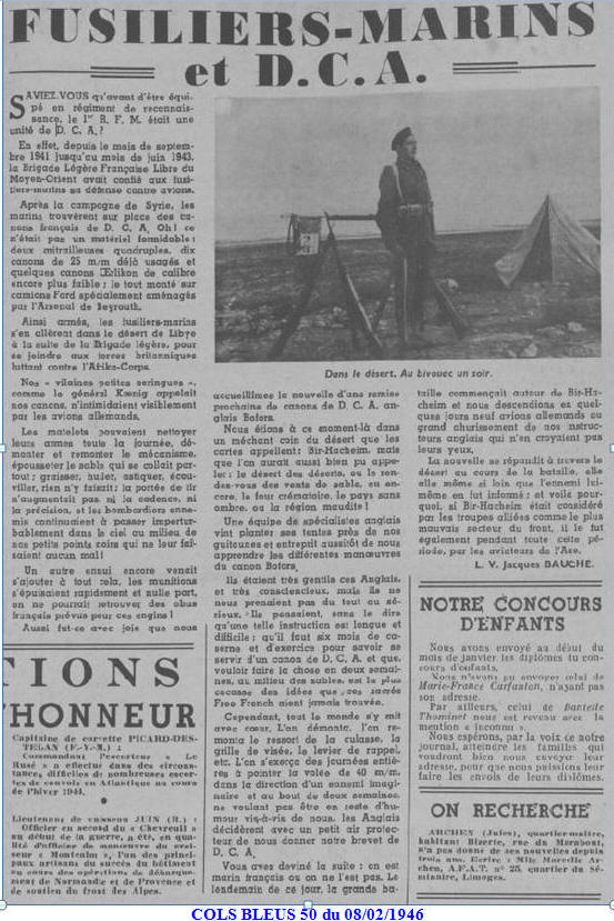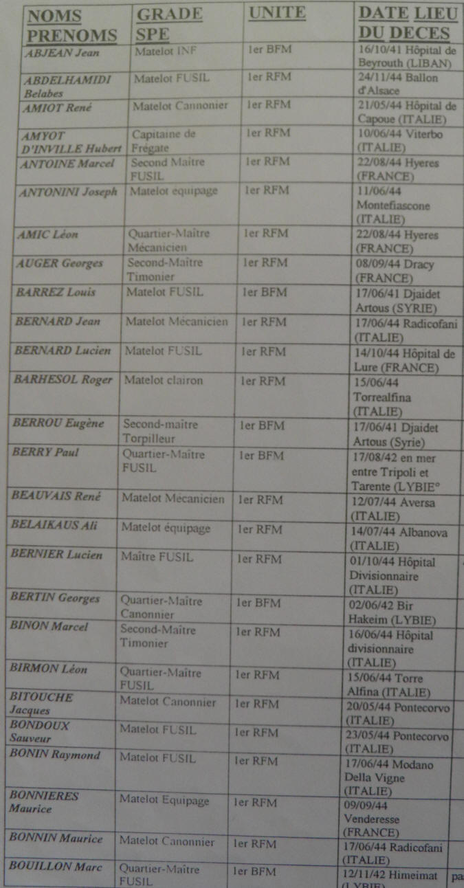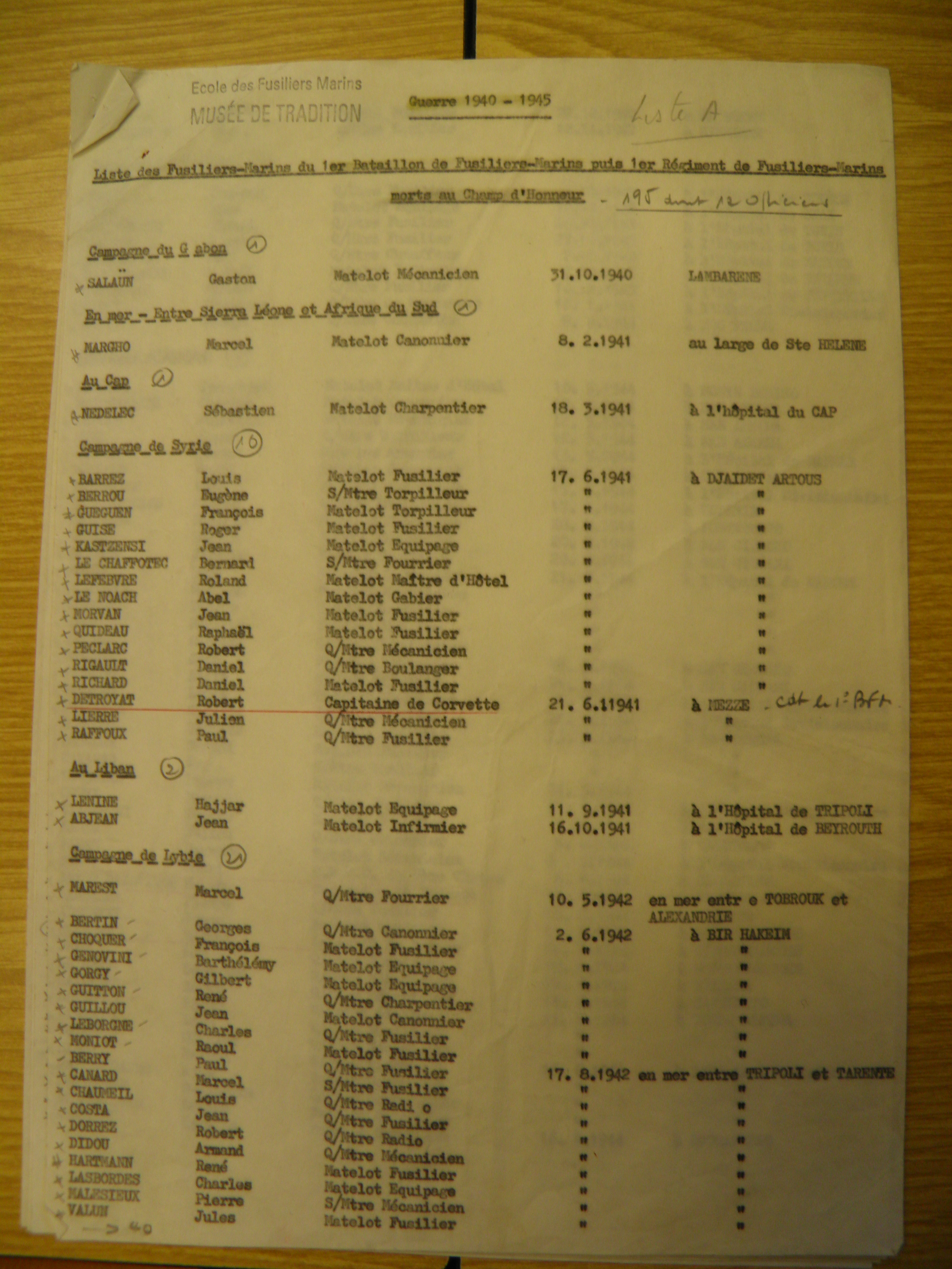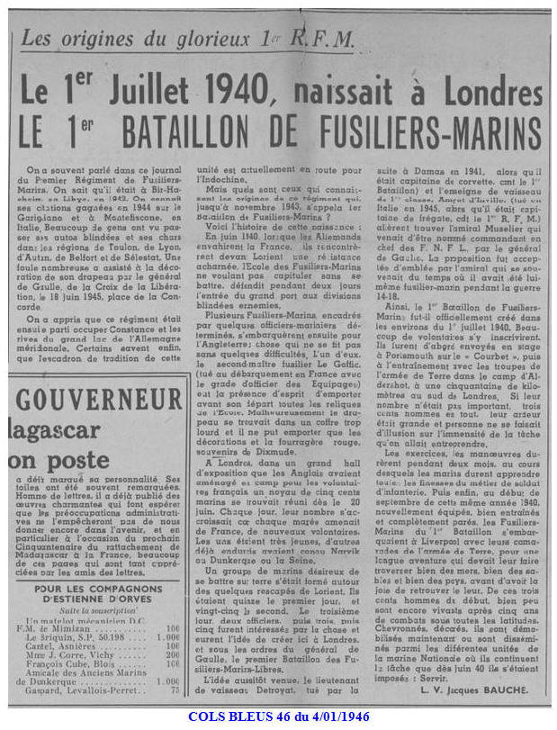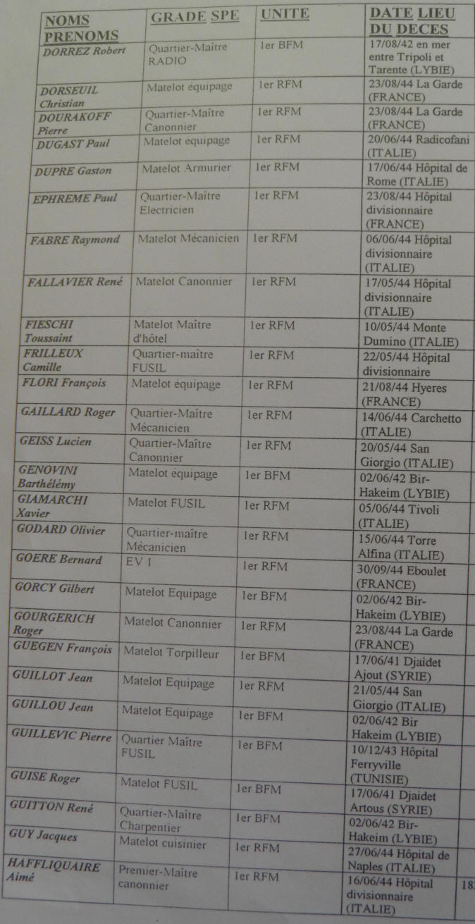 Fusiliers Marins (BFM), puis 1er Régiment de Fusiliers
