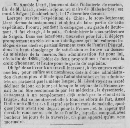 Au 1er janvier 1869, Adjudant-major au 3ème RIMA en COCHINCHINE