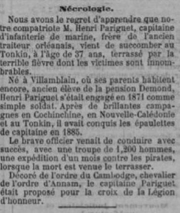 Au 1er janvier 1885, Lieutenant trésorier au Tirailleurs tonkinois.