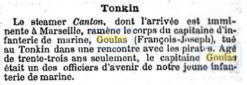Au 1er janvier 1886, Officier payeur au 4ème RIMA au TONKIN.