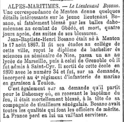 Au 1er janvier 1897, en service au bataillon détaché au SÉNÉGAL.