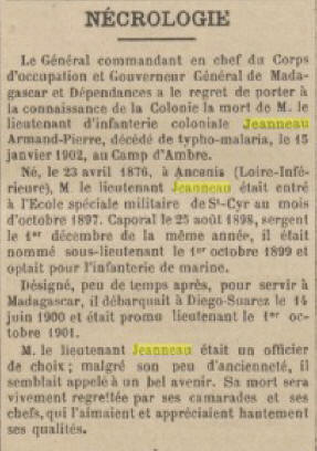 À son décès des suites des blessures reçues, Capitaine au 38ème