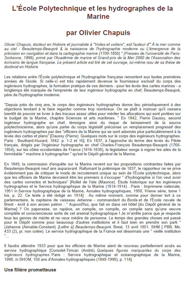 Le Corps des Ingénieurs hydrographes se recrute exclusivement parmi