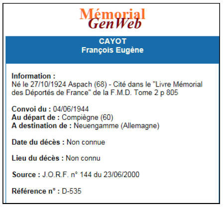 ASPACH (Haut-Rhin) - Mort en déportation, le ... 1945 à BUCHENWALD