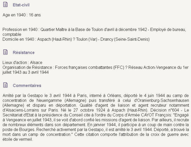 recherché par la gestapo; car en Janvier 1944; il avait attaqué la
