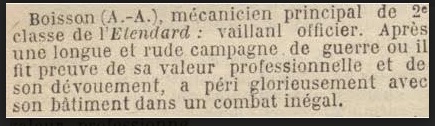 Le 25 avril 1917, en service sur le contre-torpillleur "ÉTENDARD"
