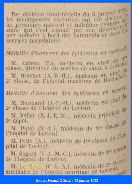 l'arrondissement et Médecin-chef de l'Hôpital maritime de LORIENT.
