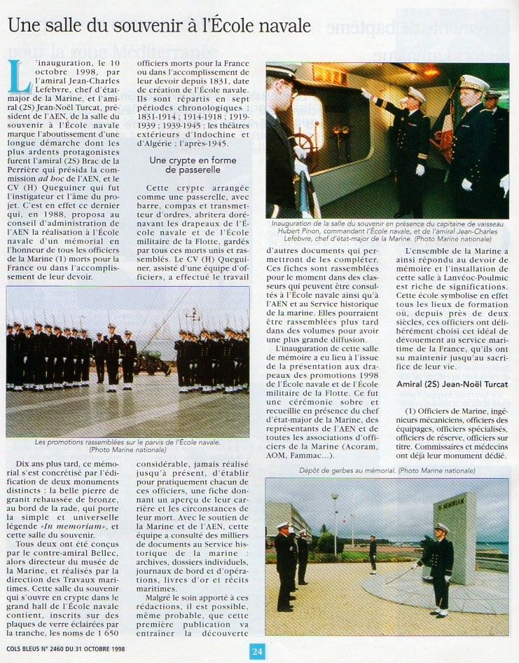 générations d'officiers de Marine le souvenir de leurs aînés morts