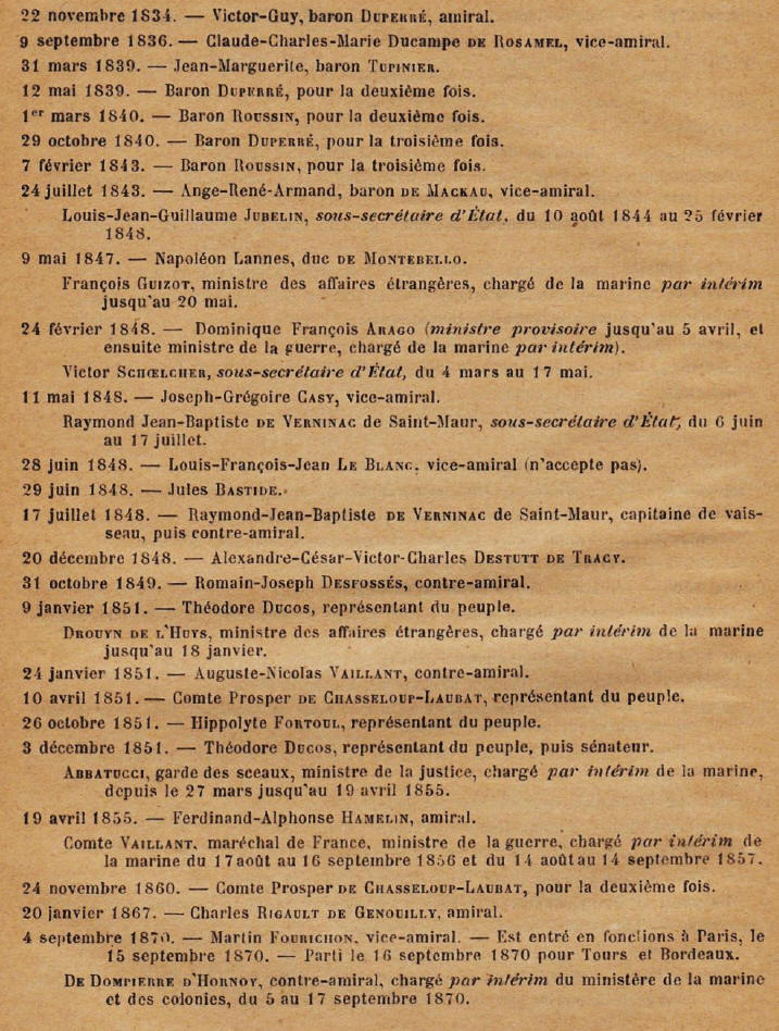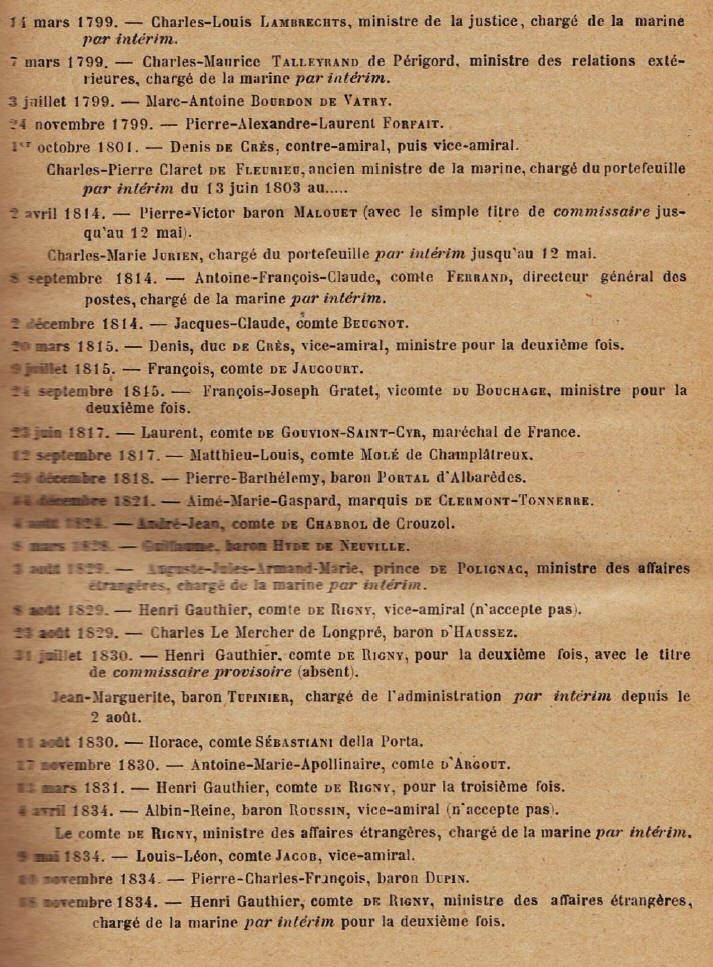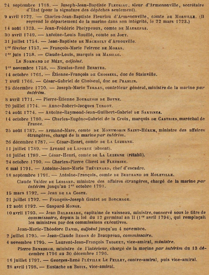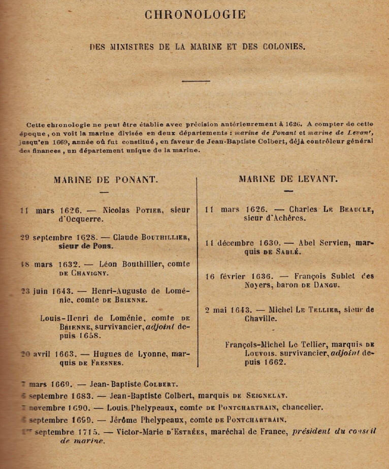 Liste des Ministres de la Marine du 11 Mars 1626 au 12 janvier