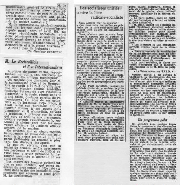 Maire de CHERBOURG en 1927, réélu maire le 19 mai 1929 pour 6 ans.