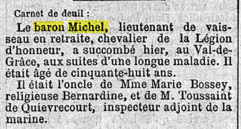 BERGUES (Nord) - Décédé le 1er décembre 1891 à PARIS Ve (Seine)