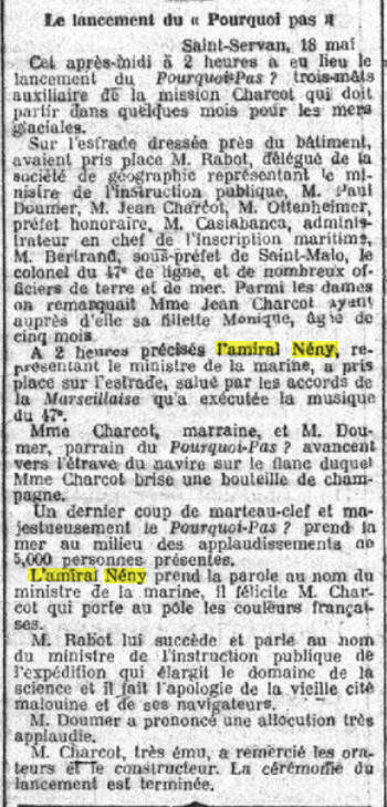 Commandant le même bâtiment porte pavillon du Vice-Amiral Palma