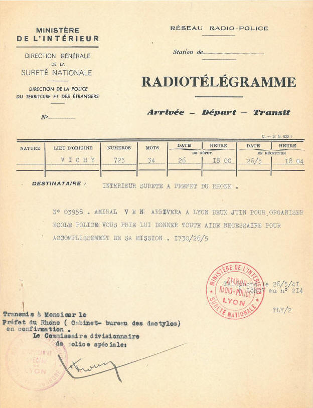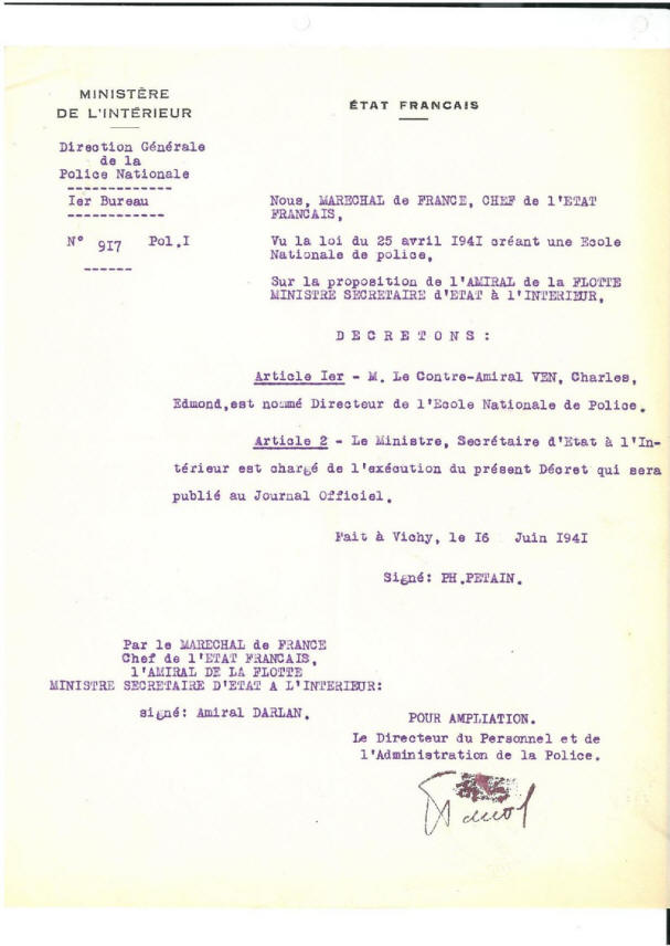 1er directeur de l'Ecole de police, créée le 23 avril 1941 et