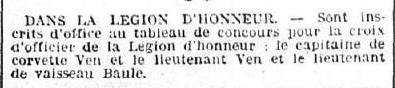 Chevalier de la Légion d'Honneur le 26 janvier 1916.