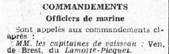 l'ordre de l'Armée navale en janvier 1916 : " Commandant une