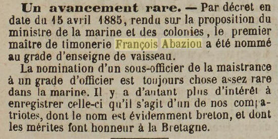 Promu Enseigne de vaisseau le 15 avril 1885, port BREST.