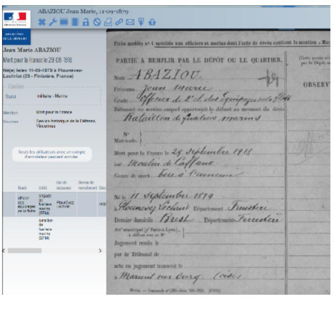 (Finistère) - Tué le 29 septembre 1918 au Moulin de LAFFAUX (Aisne).