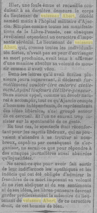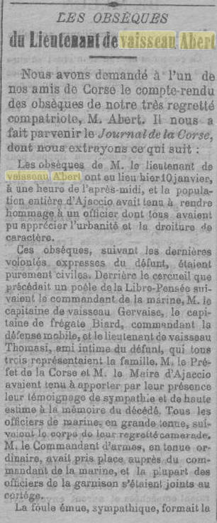 Décédé le 8 janvier 1904 à AJACCIO (Corse)