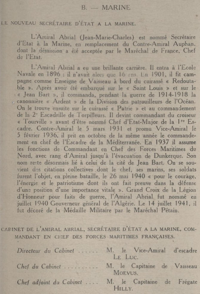 maréchal Pétain et fut ministre de la Marine du 29 novembre 1942 au