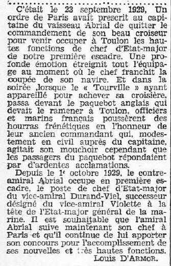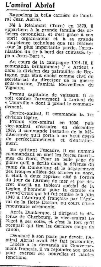 sur le cuirassé "JEAN-BART", 1ère Escadre, 1ère Armée navale (Cdt