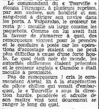sur le cuirassé "MASSÉNA", Escadre du Nord (Cdt Marie DE FAUQUE DE