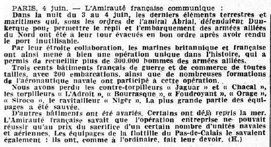 Extrait Le Nouvelliste du Morbihan / 31 mai 1940