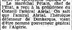 Extrait Le Nouvelliste du Morbihan / 21 juillet 1940