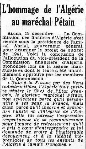 Gouverneur général de l'Algérie en 1940, il apporta son aide au