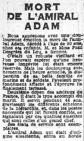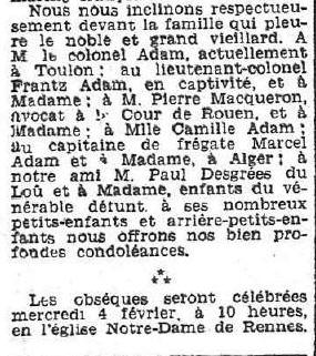 (Haute-Garonne) - Décédé le 4 février 1942 à RENNES (Ille et