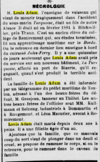 dans la nuit du 2 au 3 avril 1913 au Sud des îles d'Hyères.