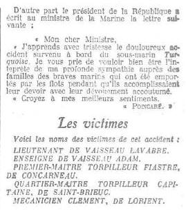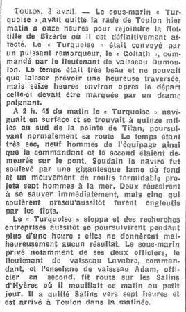 sous-marin "TURQUOISE". Le 2 avril, au cours de la nuit, se trouvant
