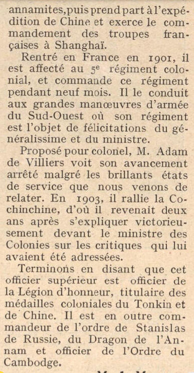 Au 1er janvier 1900, en service aux tirailleurs annamites.