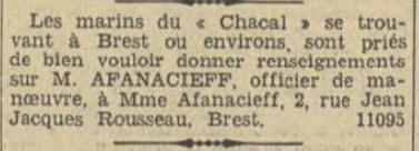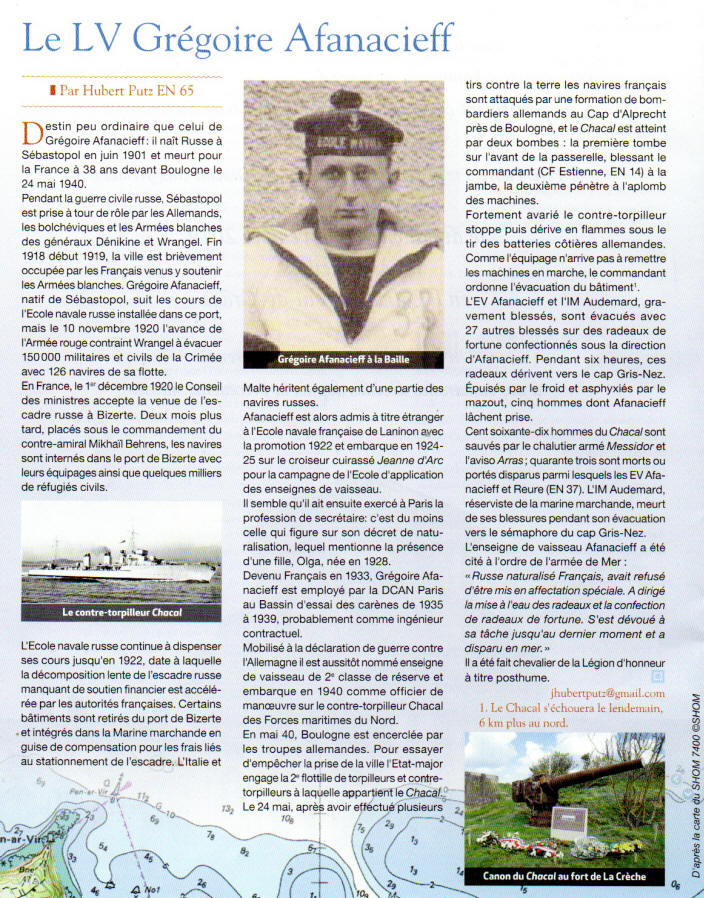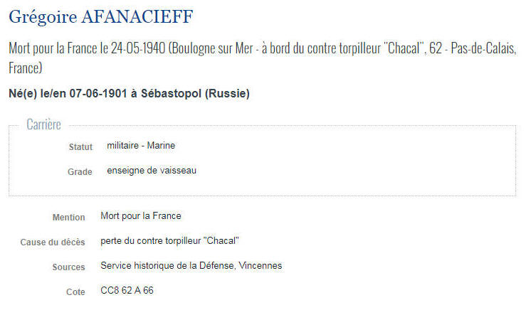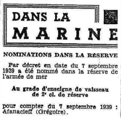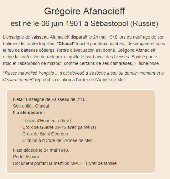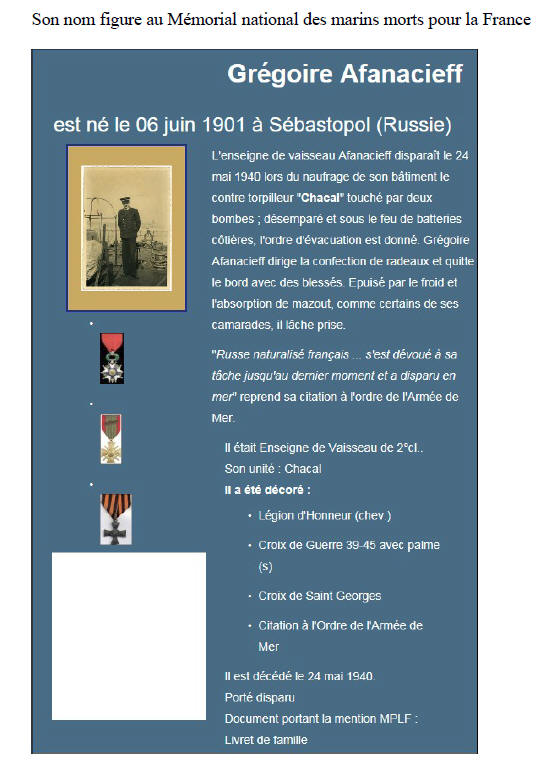 du 5 juin 1940, l'enseigne de vaisseau Afanacieff a reçu la citation