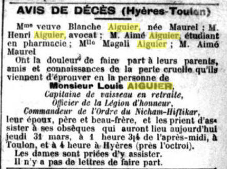 Justin Désiré AIGUIER (1878-1925), avocat en la Cour d’appel de