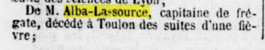 - Décédé le 15 aout 1866 à TOULON (Var)