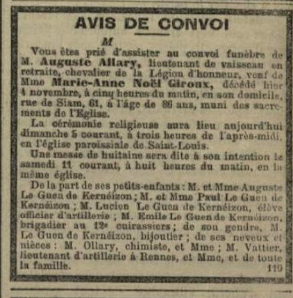 à BREST (Finistère) - Décédé le 4 novembre 1905 à BREST (Finistère)