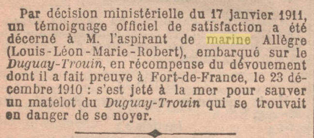 sur le cuirassé "VOLTAIRE", 1ère Escadre (Cdt Joseph BARNOUIN).