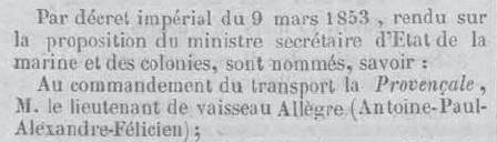 ALLÈGRE commis principal de la marine décédé à Narbonne (Aude) le 24