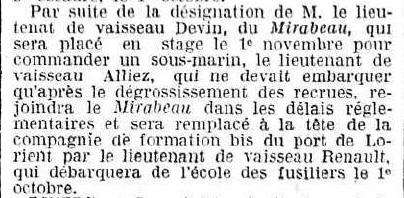 sur le cuirassé "MIRABEAU", 1ère Escadre, 1ère Armée navale (Cdt