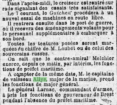 général de la Marine du 2ème arrondissement maritime à BREST.