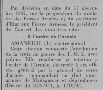à compter de juin 1944, la marine à Alger, poste qu’il occupe
