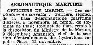 d'aviation à ISTRES. En 1920, il est affecté au C.A.M. de BERRE puis