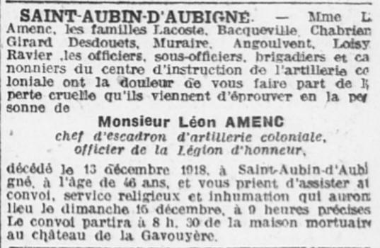 CLERMONT-FERRAND (Puy-de-Dôme) - Décédé le 13 décembre 1918 à SAINT