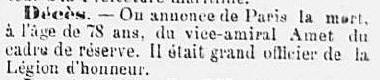 Il est promu Capitaine de Vaisseau le 12 mars 1870. Il est appelé
