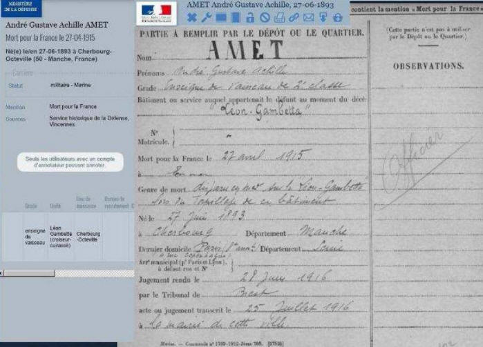 victime du torpillage du "LÉON-GAMBETTA" par le sous-marin