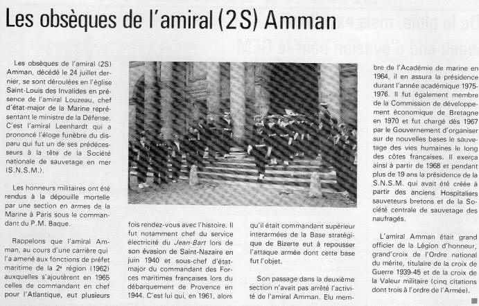Entré à l’Ecole navale en 1923, Amman sert en Indochine puis sur les
