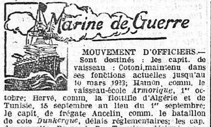 sur le cuirassé "MIRABEAU", 1ère Escadre, 1ère Armée navale (Cdt